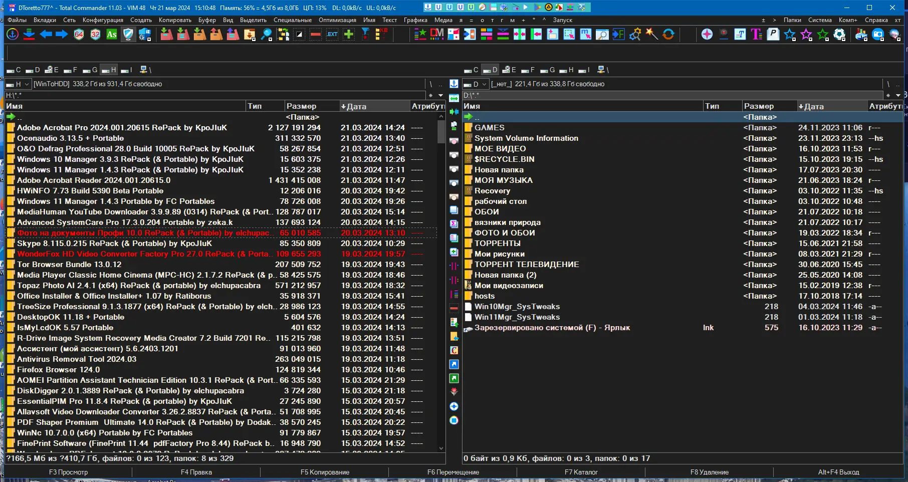Работа с TC VIM начинается с распаковки архива в удобное место — на жёсткий диск, SSD или съёмный носитель. После запуска открывается двухпанельный интерфейс, где слева и справа отображаются содержимое папок. Навигация осуществляется с помощью клавиш, мыши или горячих комбинаций. Для быстрого доступа к часто используемым инструментам предусмотрены дополнительные панели, включая пользовательскую панель «Я», которую можно настраивать под себя. Через главное меню «Конфигурация» можно включить информационную строку в заголовке, изменить цветовую схему, добавить имя пользователя или переключить версию файлового менеджера. Дополнительные программы из репозитория загружаются одним кликом и автоматически интегрируются в интерфейс.