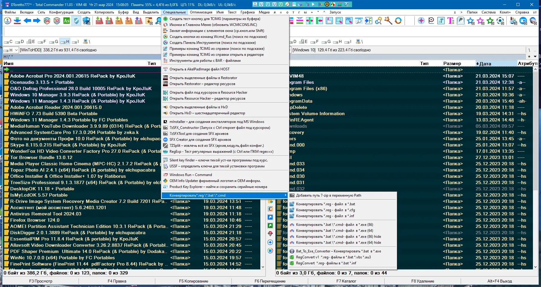 TC VIM — это расширенная портативная сборка популярного файлового менеджера Total Commander 11.03 с интегрированными утилитами, плагинами и инструментами для эффективной работы с файлами и папками. Решение подходит для пользователей, которым нужна высокая функциональность без установки, с возможностью кастомизации интерфейса и автоматической интеграции дополнительных программ. Сборка работает на всех актуальных версиях Windows и не требует прав администратора.