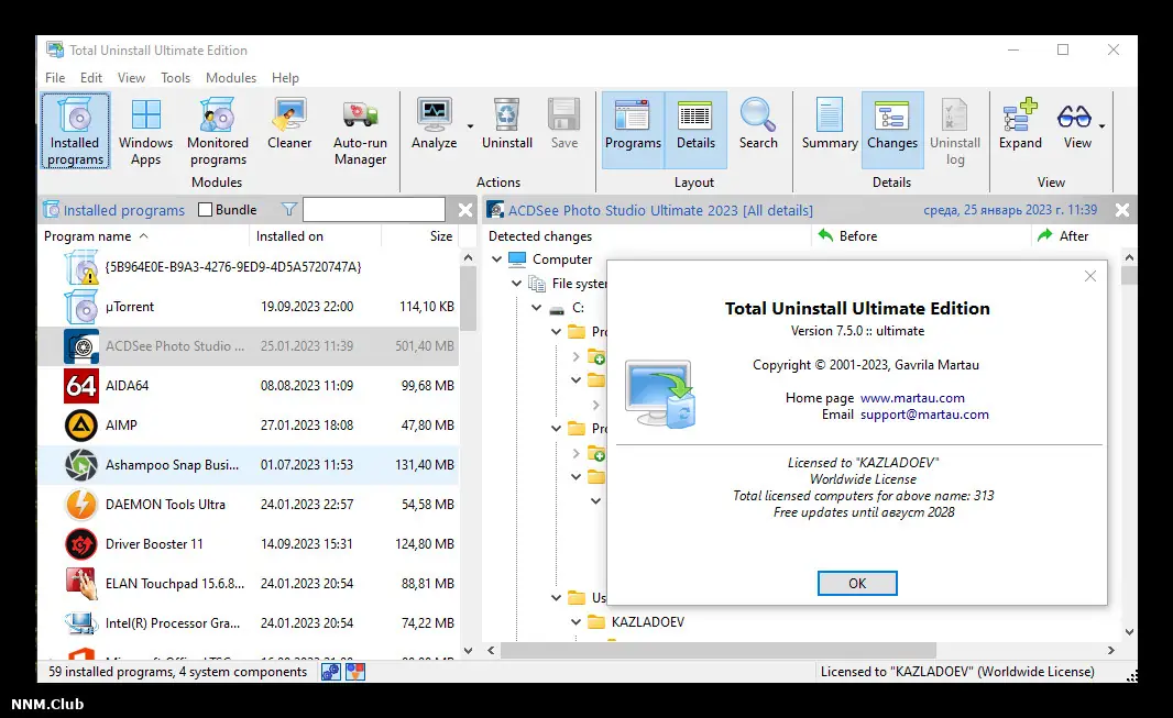 Total Uninstall — это мощная утилита для глубокого анализа и полного удаления программ из операционной системы. Программа отслеживает изменения в реестре и файловой системе до и после установки приложений, обеспечивая чистое удаление без следов. Подходит для пользователей, которые часто устанавливают и удаляют различные программы.