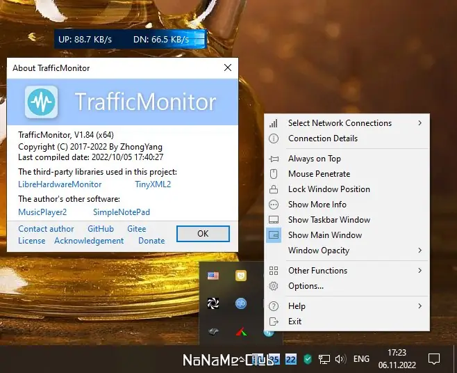 TrafficMonitor предоставляет пользователям удобный способ контроля за сетевым трафиком и производительностью системы. Утилита отображает текущую скорость входящего и исходящего соединения, а также уровень загрузки центрального процессора и объём используемой оперативной памяти. Все данные обновляются в реальном времени, обеспечивая актуальную картину состояния системы.