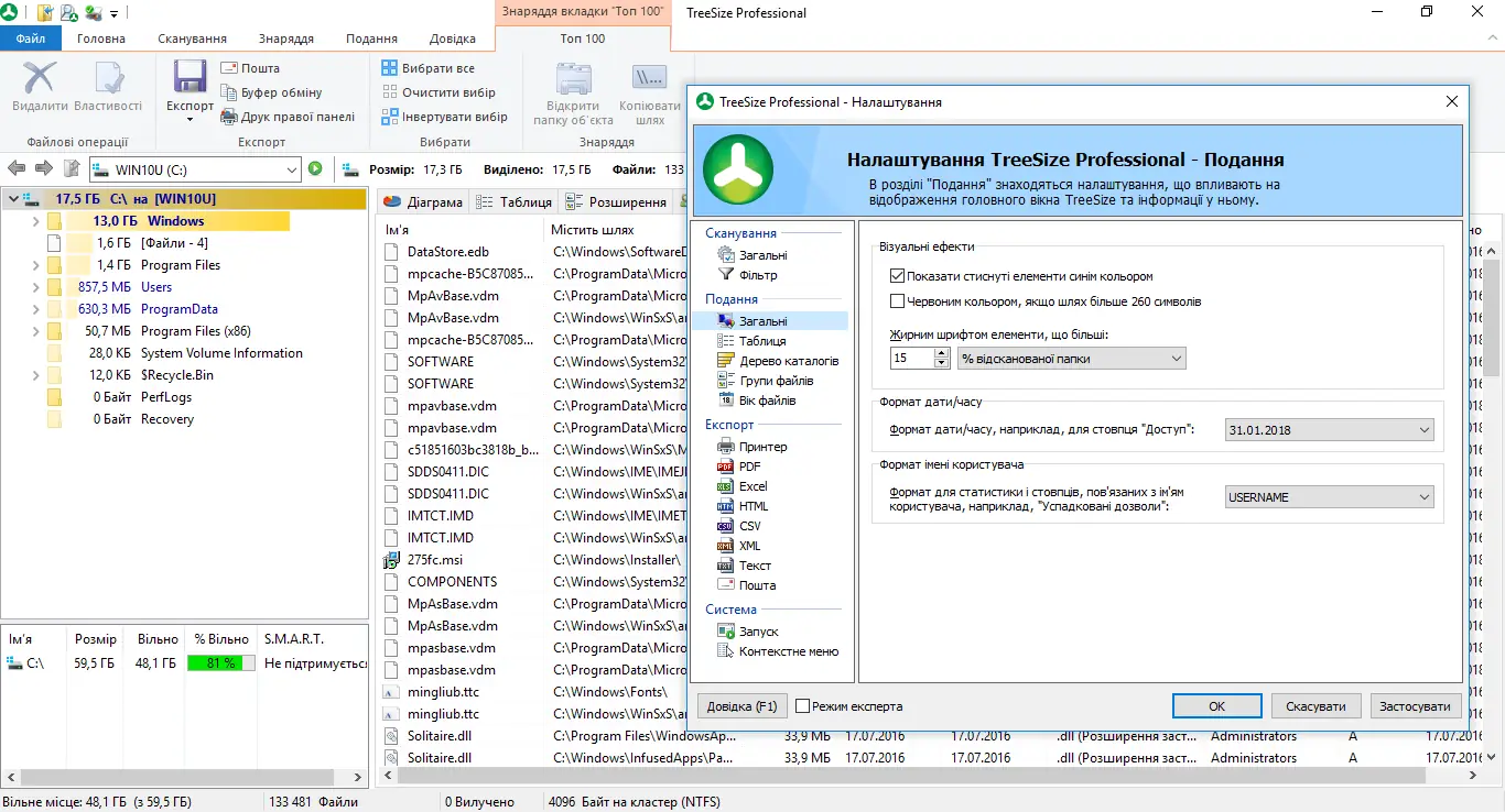 - Интеграция с контекстным меню проводника Windows для быстрого доступа к анализу папок