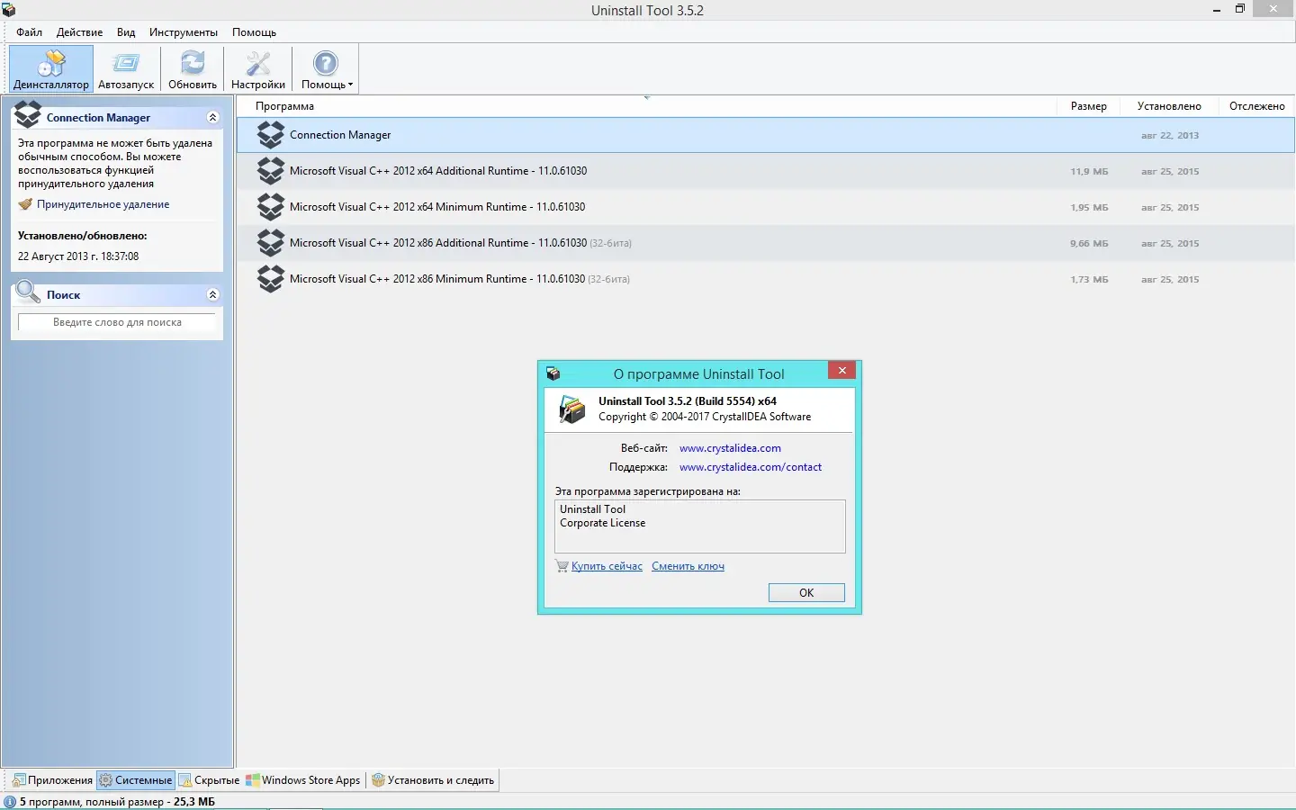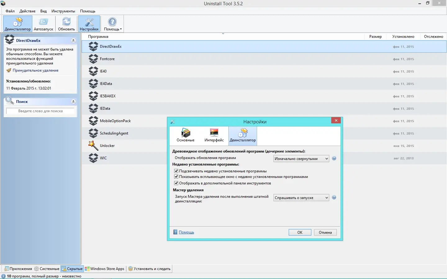 - Поддерживает три категории приложений: пользовательские программы, системные компоненты и скрытые установки.