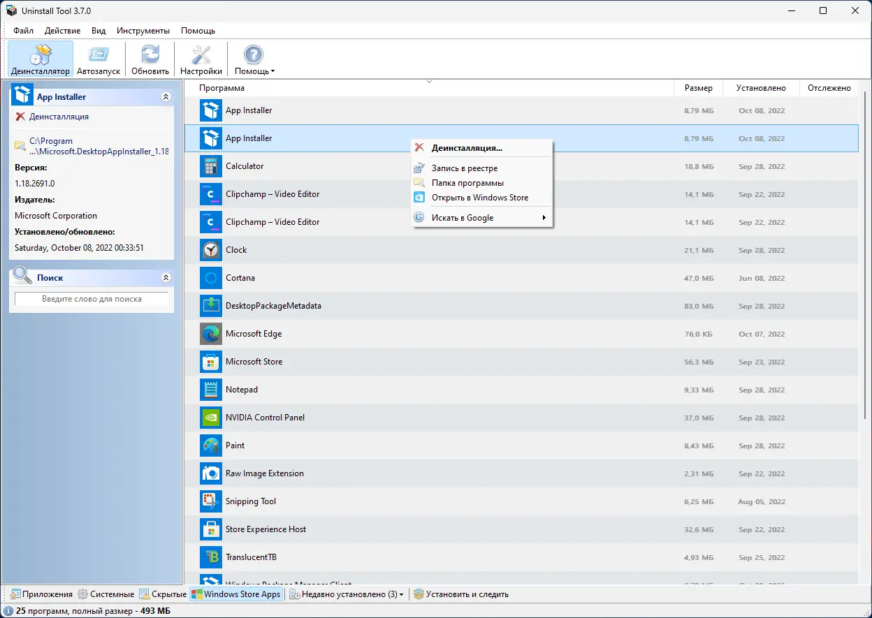 - Поддержка пакетного удаления нескольких программ одновременно