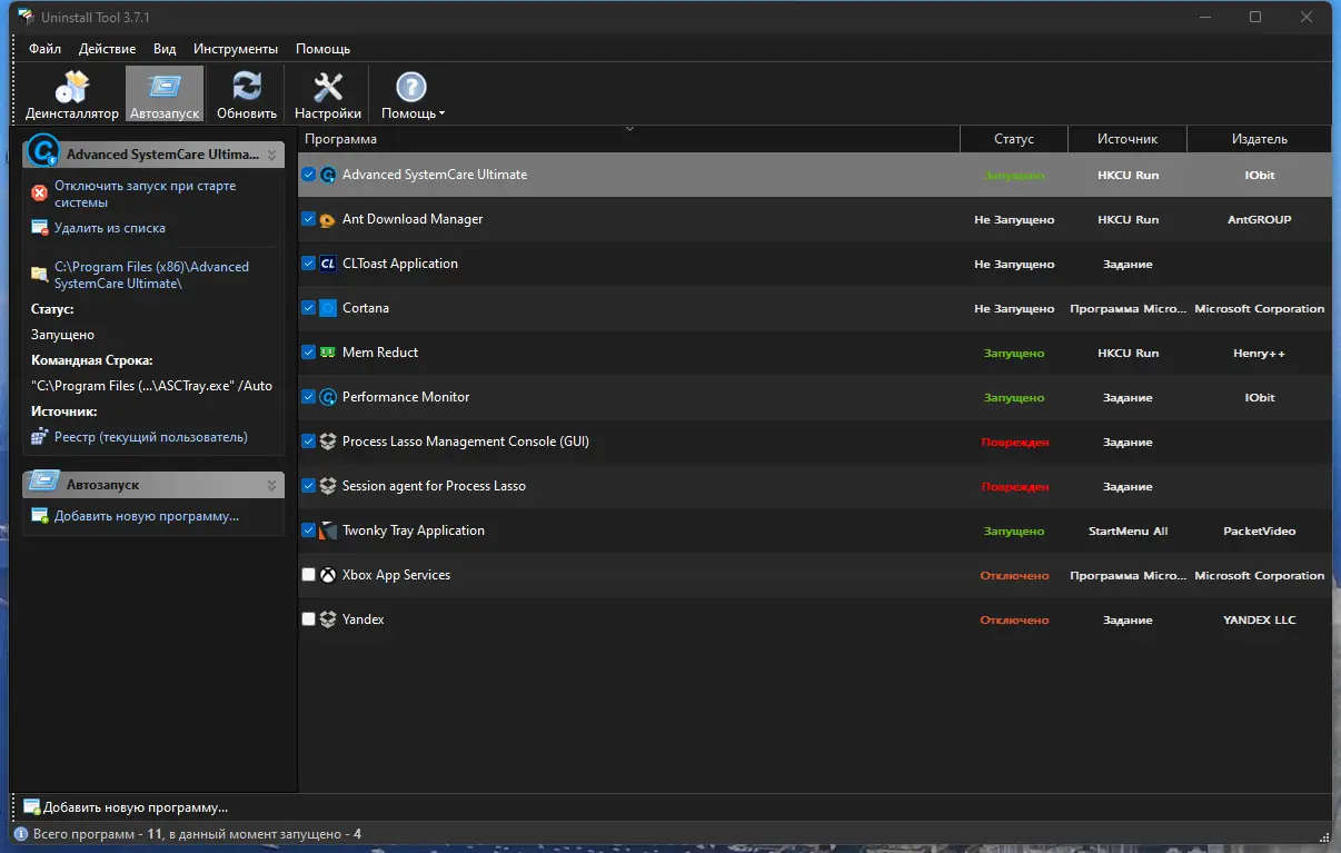 - Высокая скорость и точность удаления программ
