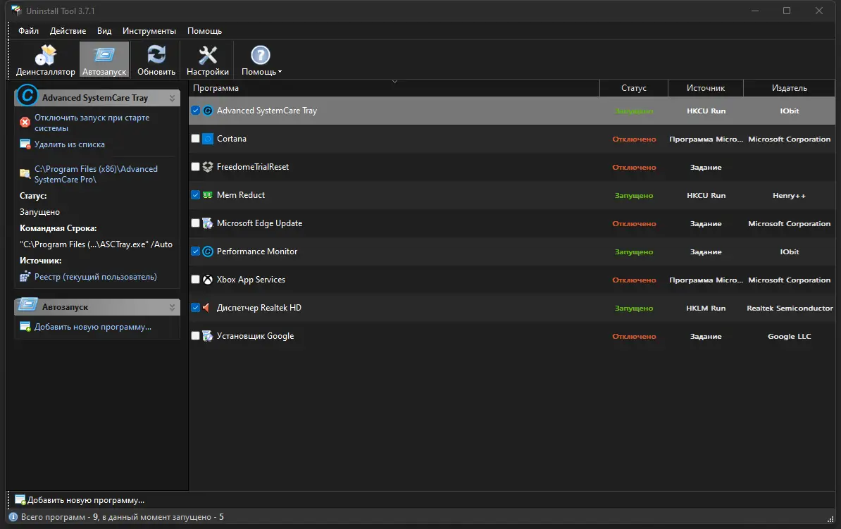 - Поддержка пакетного удаления нескольких программ одновременно