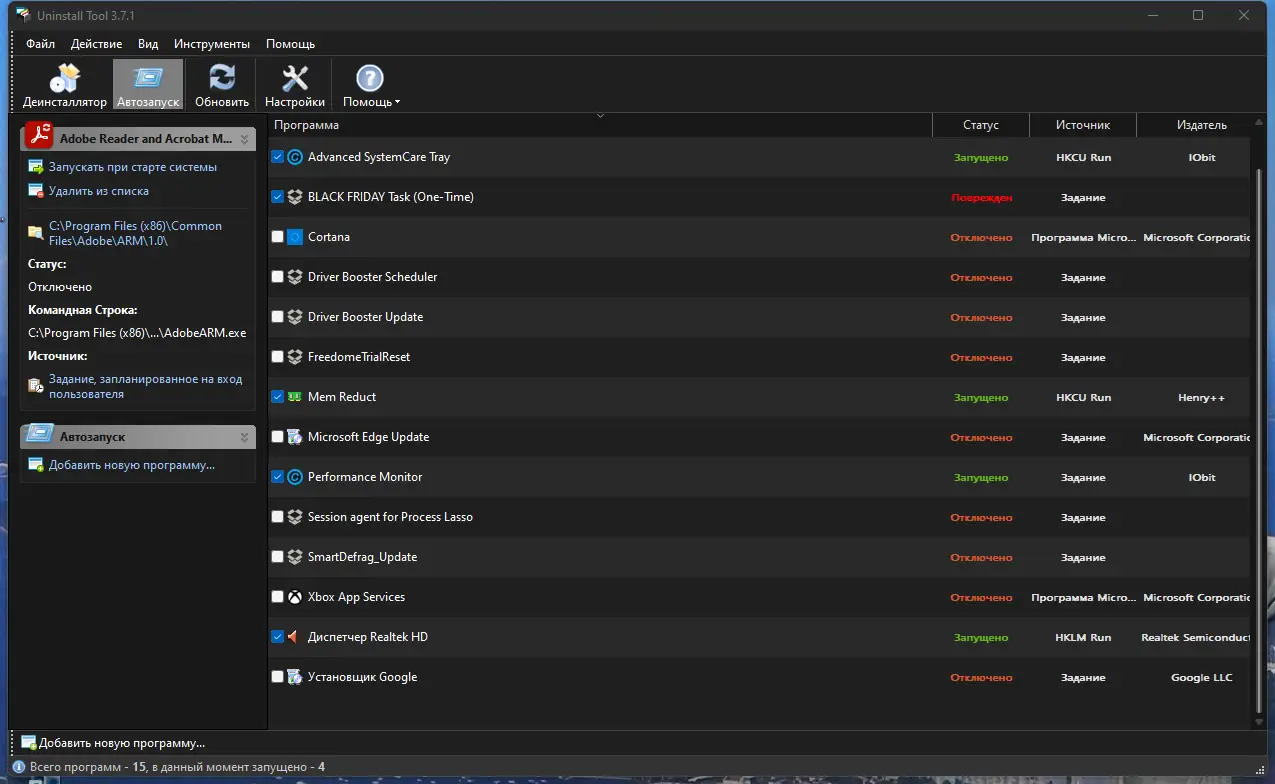 - Поддержка пакетного удаления и управления автозагрузкой