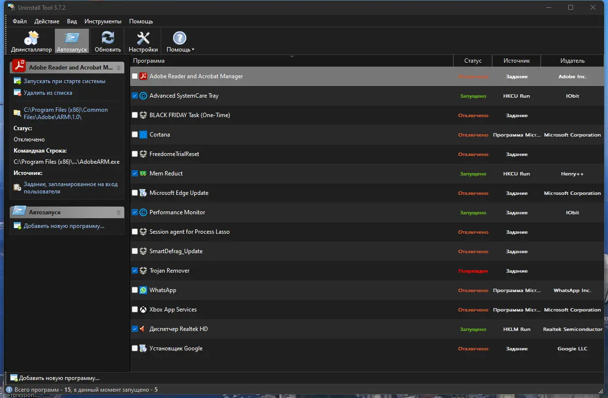 Uninstall Tool — это продвинутая утилита для полного и безопасного удаления программ с компьютера, которая заменяет стандартный деинсталлятор Windows. Программа эффективно очищает систему от остатков программ, включая записи в реестре, папки и файлы, а также контролирует автозагрузку и отслеживает изменения при установке ПО. Благодаря высокой точности и скорости, она помогает поддерживать систему в оптимальном состоянии.
