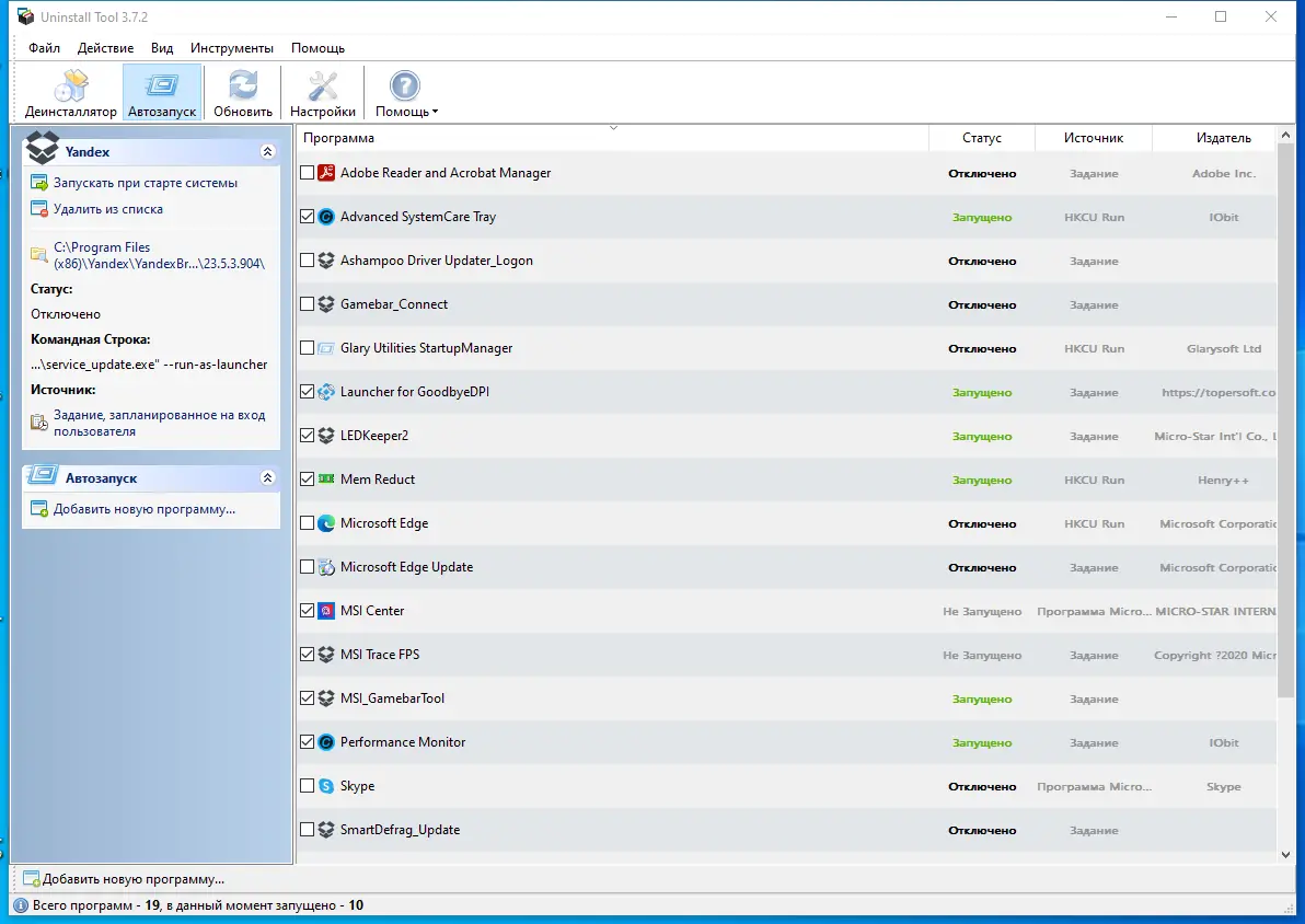 - Управление автозагрузкой Windows