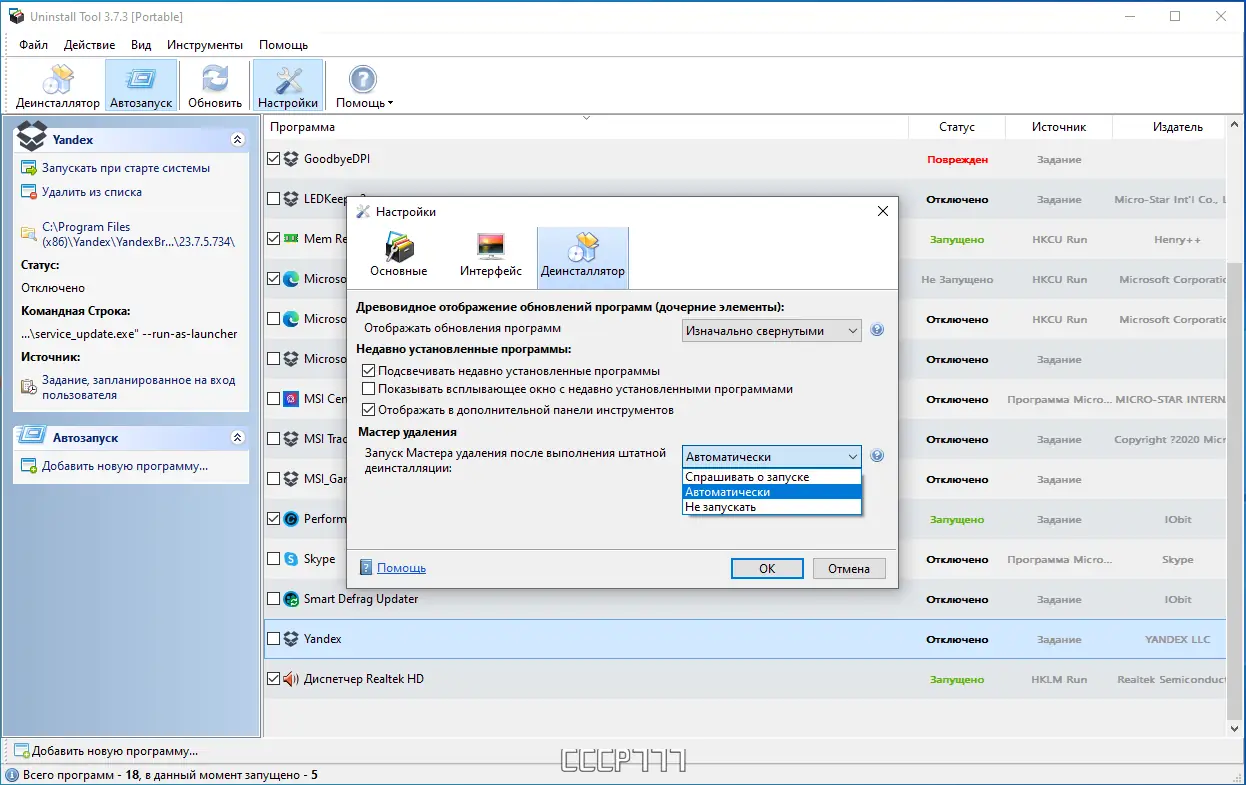 - Управление программами, запускающимися при старте Windows