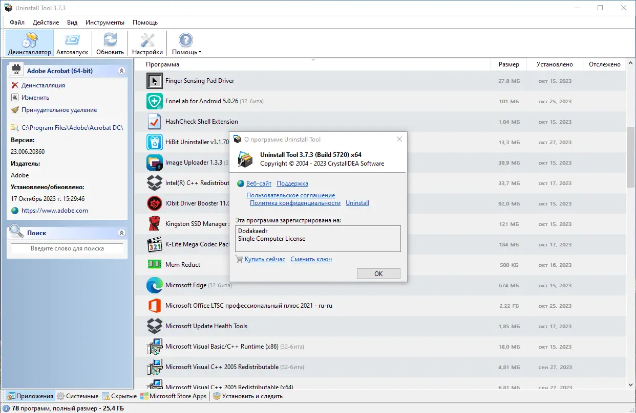 Uninstall Tool — это мощная утилита для полного и безопасного удаления программ, способная очистить систему от всех следов ненужного программного обеспечения, включая остатки в реестре и файловой системе. Инструмент предлагает расширенные функции, такие как мониторинг установки, управление автозагрузкой и портативный режим. Программа работает быстрее и эффективнее стандартного деинсталлятора Windows, обеспечивая высокую степень контроля над системой.
