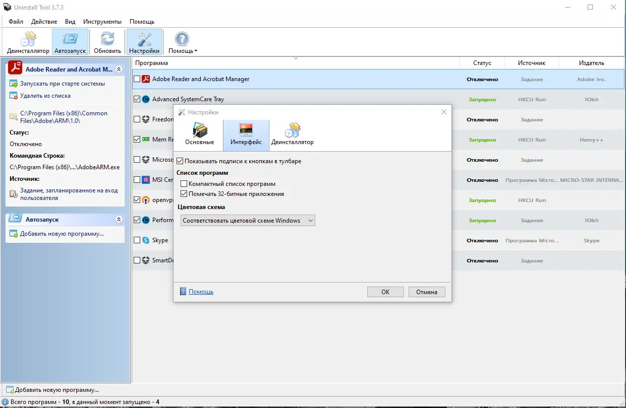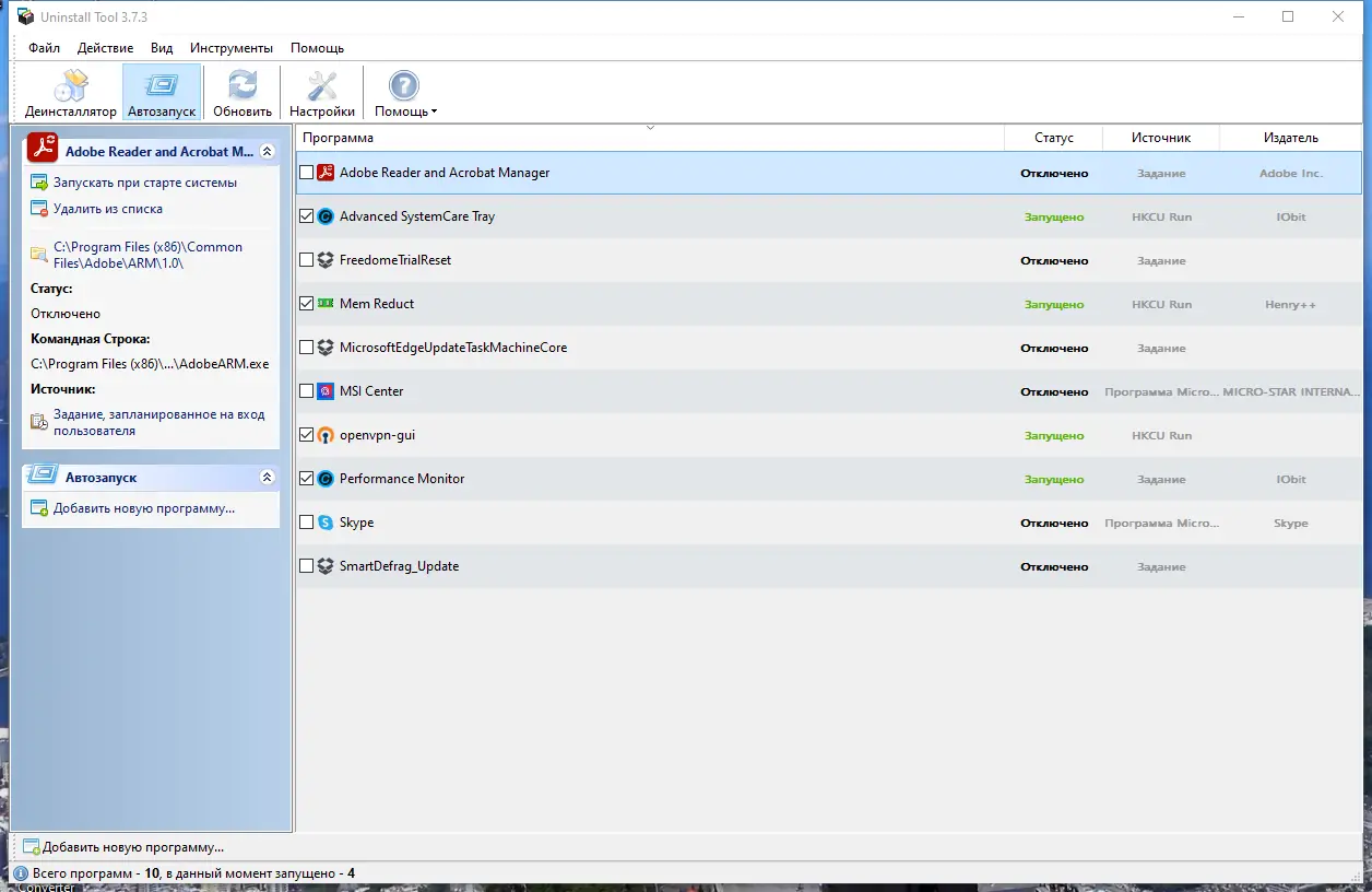 - Управление программами автозагрузки с возможностью отключения или удаления нежелательных элементов