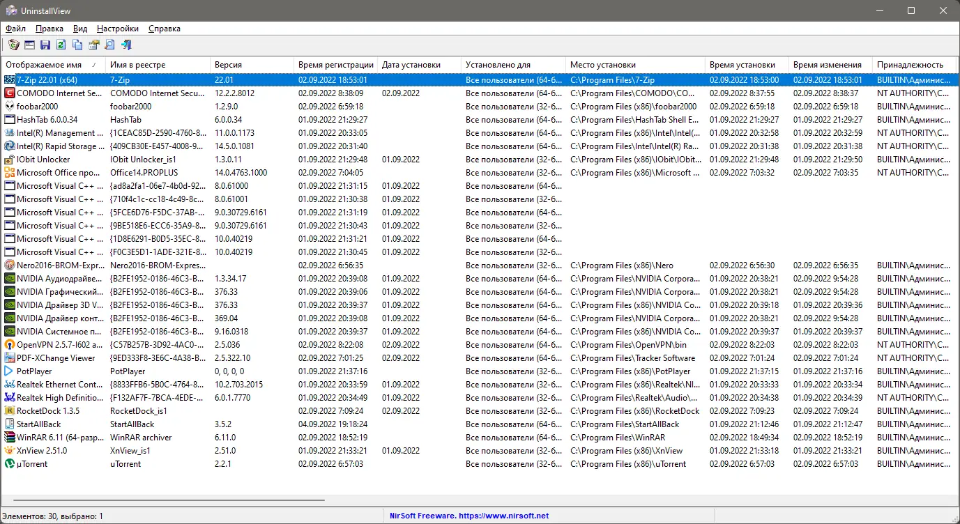UninstallView предоставляет детализированный обзор всех установленных программ, включая информацию о версии, издателе, дате установки и размере занимаемого места. Утилита сканирует реестр и системные каталоги, формируя единый информационный массив, который отображается в виде структурированной таблицы. Это позволяет быстро находить ненужное или устаревшее программное обеспечение, а также анализировать изменения в системе со временем. Поддержка работы с внешними накопителями делает возможным анализ программного состава на отключённых системах.
