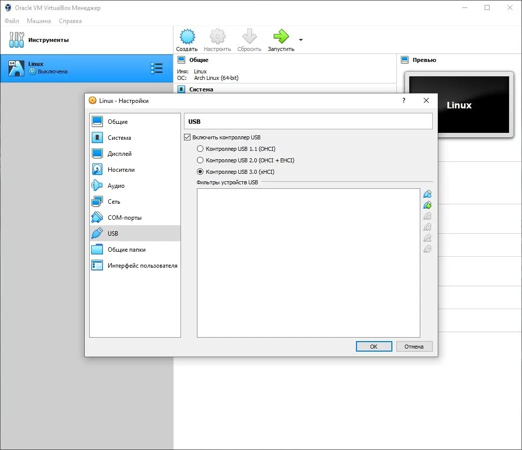 - Работа с USB-устройствами, подключаемыми напрямую к виртуальной среде.