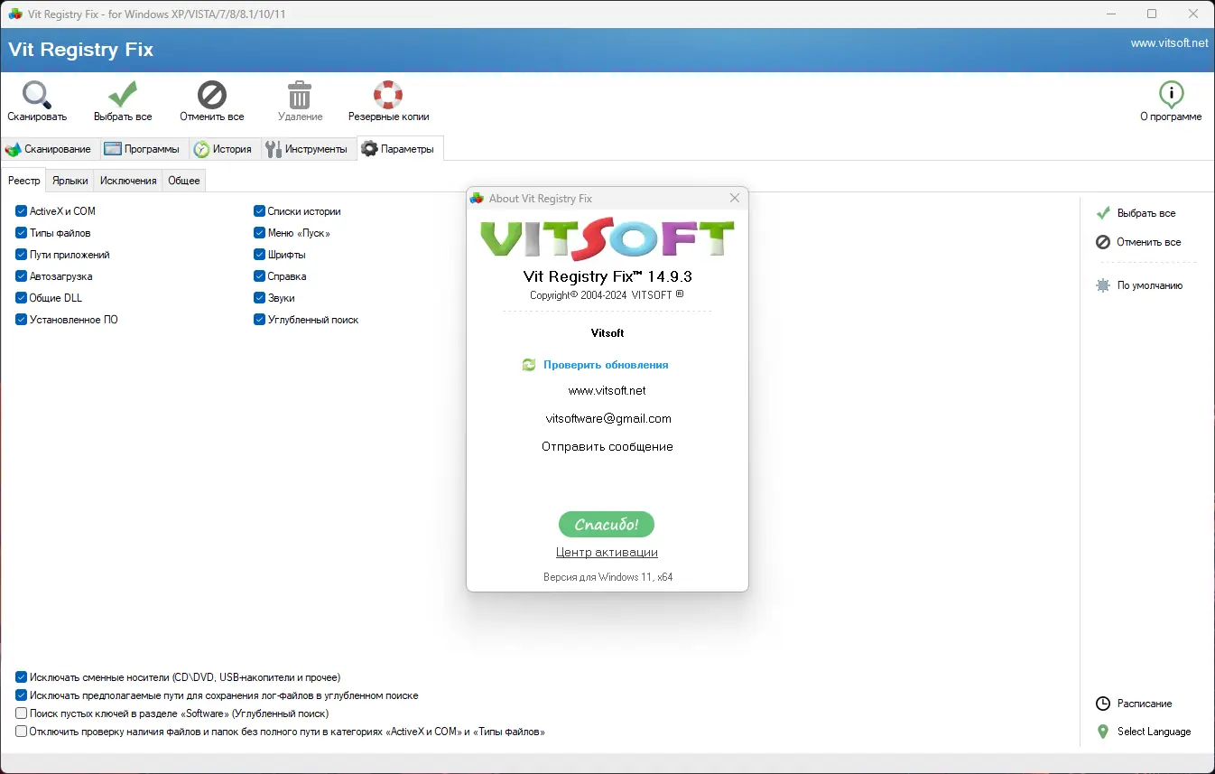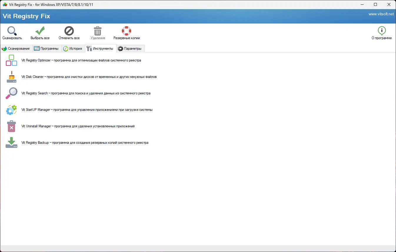 Vit Registry Fix — это инструмент для глубокой очистки и оптимизации системного реестра Windows, способный находить и устранять более 50 типов ошибок. Программа сочетает автоматическое сканирование с возможностью ручного управления, обеспечивая надежность и гибкость в работе. Она помогает ускорить работу системы, устранить сбои и подготовить компьютер к стабильной эксплуатации.
