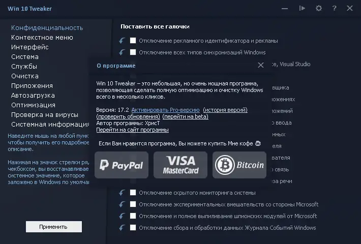 Описание Win10 Tweaker