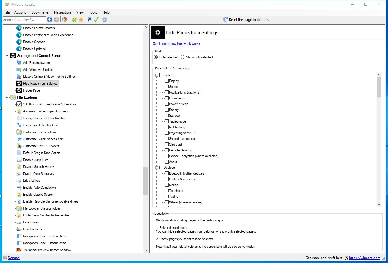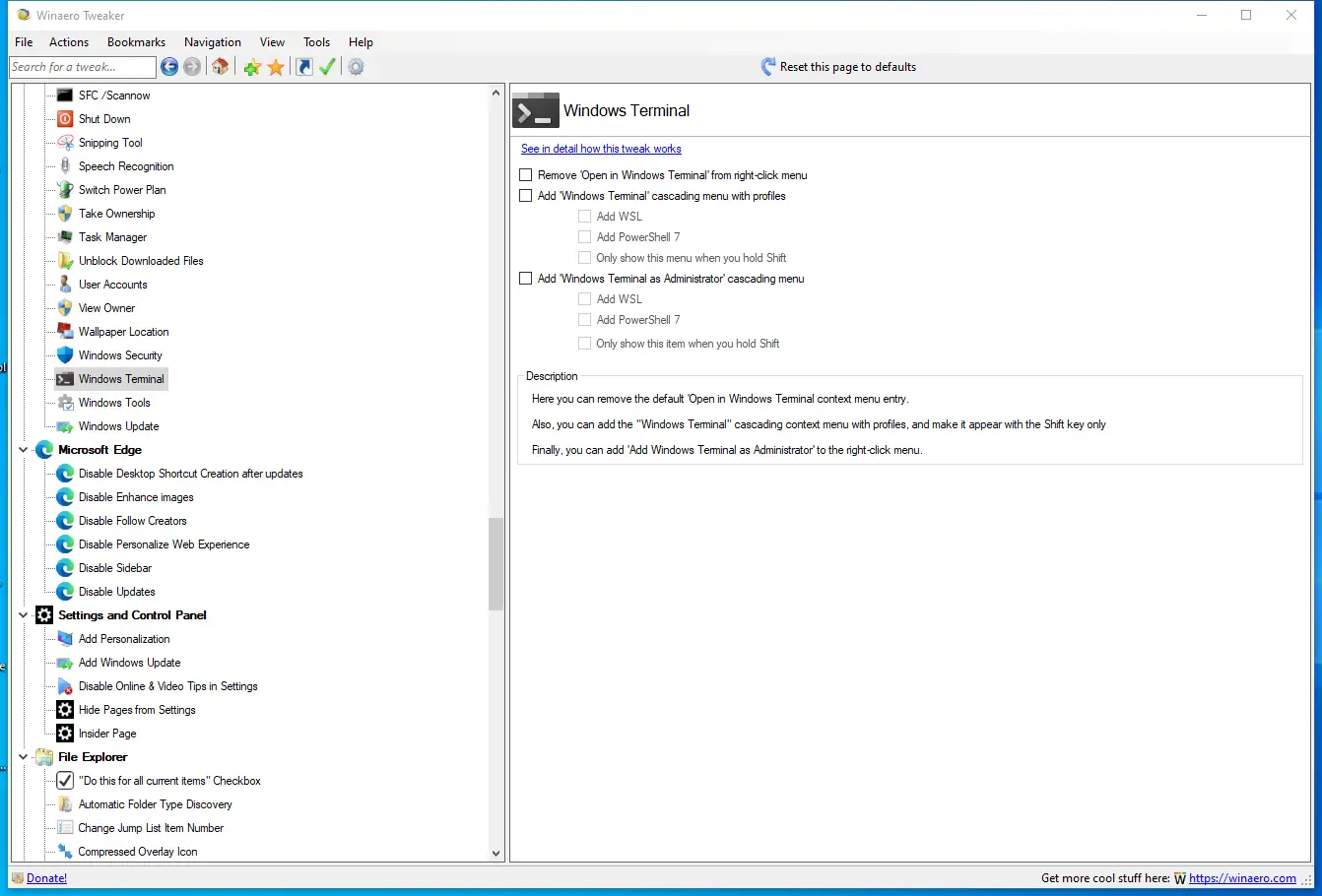 Как пользоваться Winaero Tweaker