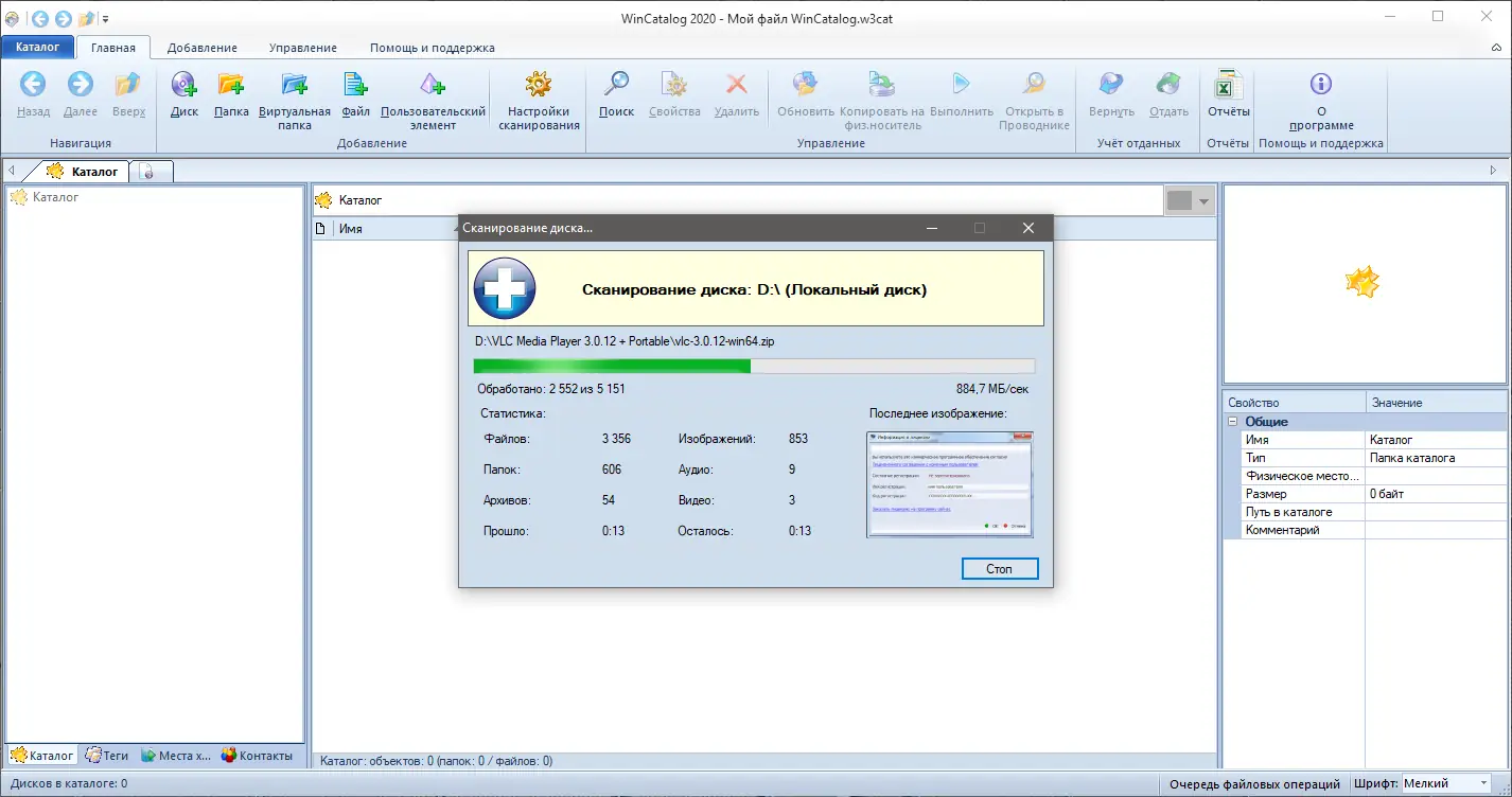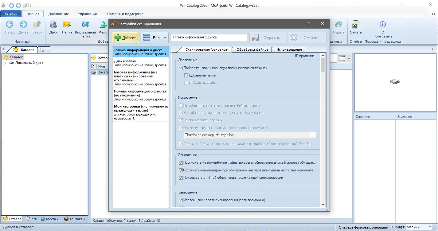 Программа WinCatalog предназначена для систематизации цифровых накопителей и каталогизации их содержимого. Она поддерживает работу с различными типами носителей, включая оптические диски, внешние диски, сетевые папки и архивы. После сканирования информация о файлах сохраняется в базе данных, что позволяет осуществлять быстрый поиск без подключения оригинального носителя.