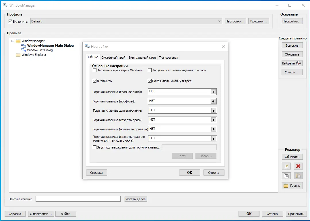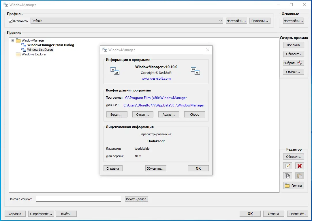 WindowManager предлагает широкий набор функций, выходящих за рамки простого восстановления окон. Его архитектура ориентирована на гибкость и производительность, что делает его ценным инструментом для продвинутых пользователей. Поддержка нескольких профилей и мощная система триггеров позволяет адаптировать поведение системы под разные сценарии — от офисной работы до мультимедийных задач. При этом программа не перегружает систему, работая в фоне с минимальным потреблением ресурсов. Тем не менее, из-за обширных возможностей, новичкам может потребоваться время на освоение всех настроек.