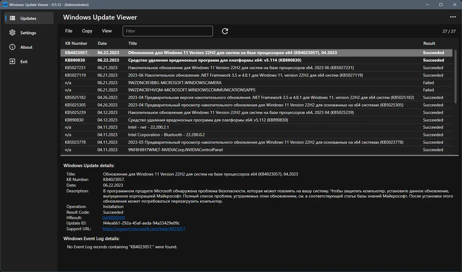 Update Viewer разработан как инструмент для диагностики и анализа установленных обновлений операционной системы. Приложение извлекает данные через интерфейс Windows Update API, а также анализирует системные журналы событий, сопоставляя записи по идентификаторам KB. Это позволяет точно определить, какие именно исправления были применены, включая безопасность, драйверы и компоненты системы.