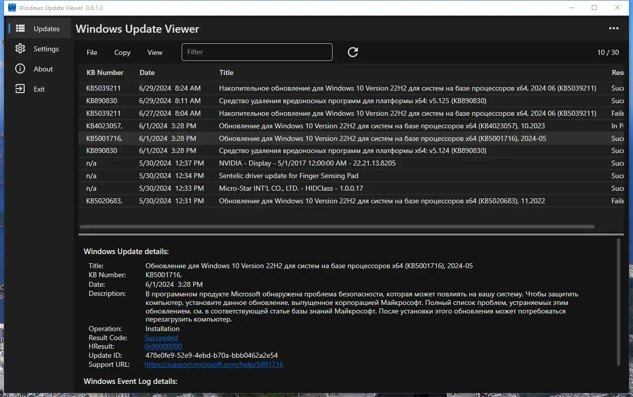 Update Viewer доступен для загрузки в стабильной и портативной версии, совместимой с различными редакциями windows. Обновления приложения регулярно публикуются, включая исправления ошибок и улучшения интерфейса. Утилита поддерживает как 32-, так и 64-битные системы, начиная с Windows 7.