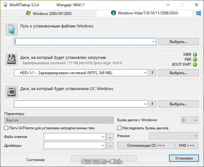 WinNTSetup — это утилита для установки операционной системы Windows в дополнительный раздел без использования установочного носителя. Программа поддерживает работу с различными форматами образов и позволяет гибко настраивать процесс инсталляции. Она особенно полезна при создании мультизагрузочных систем и установке Windows на виртуальные диски.