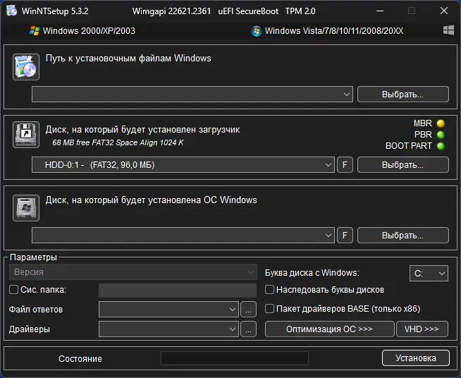 WinNTSetup — это инструмент для гибкой и быстрой установки операционной системы Windows на физический или виртуальный диск без использования стандартного установщика. Программа позволяет создать дополнительную загрузочную запись и развернуть систему из образа, включая поддержку WIM, ESD и VHD. Это удобное решение для тех, кто хочет установить windows 10 или другую версию ОС с минимальными временными затратами.