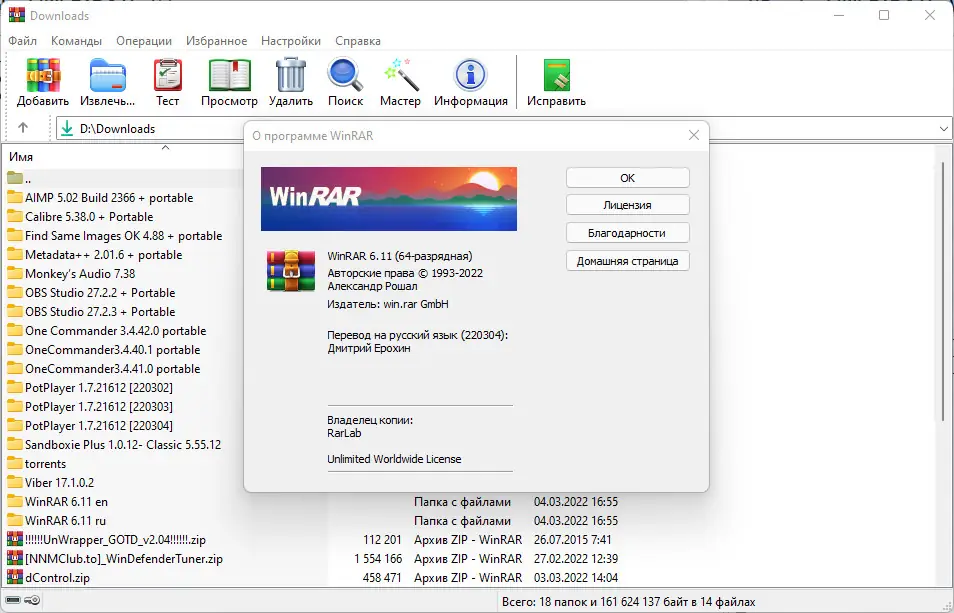 WinRAR — мощный и надёжный архиватор, поддерживающий широкий спектр форматов и обеспечивающий высокую степень сжатия данных. Программа совместима с различными операционными системами и предлагает продвинутые функции, включая шифрование, создание самораспаковывающихся архивов и восстановление повреждённых файлов. Её интерфейс интуитивно понятен, а возможности охватывают как базовые, так и профессиональные задачи архивации.