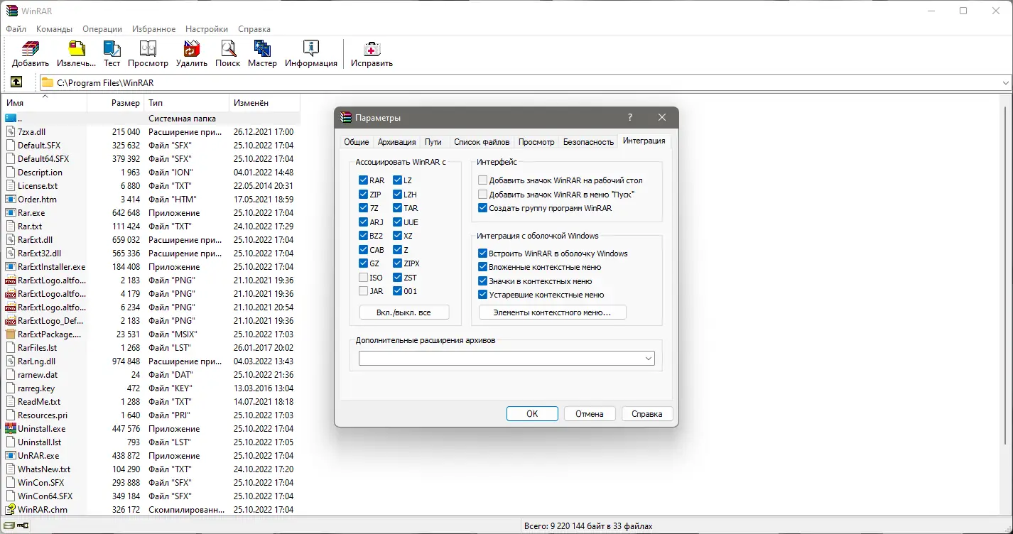 Описание WinRAR