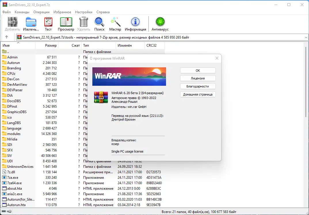 Описание WinRAR