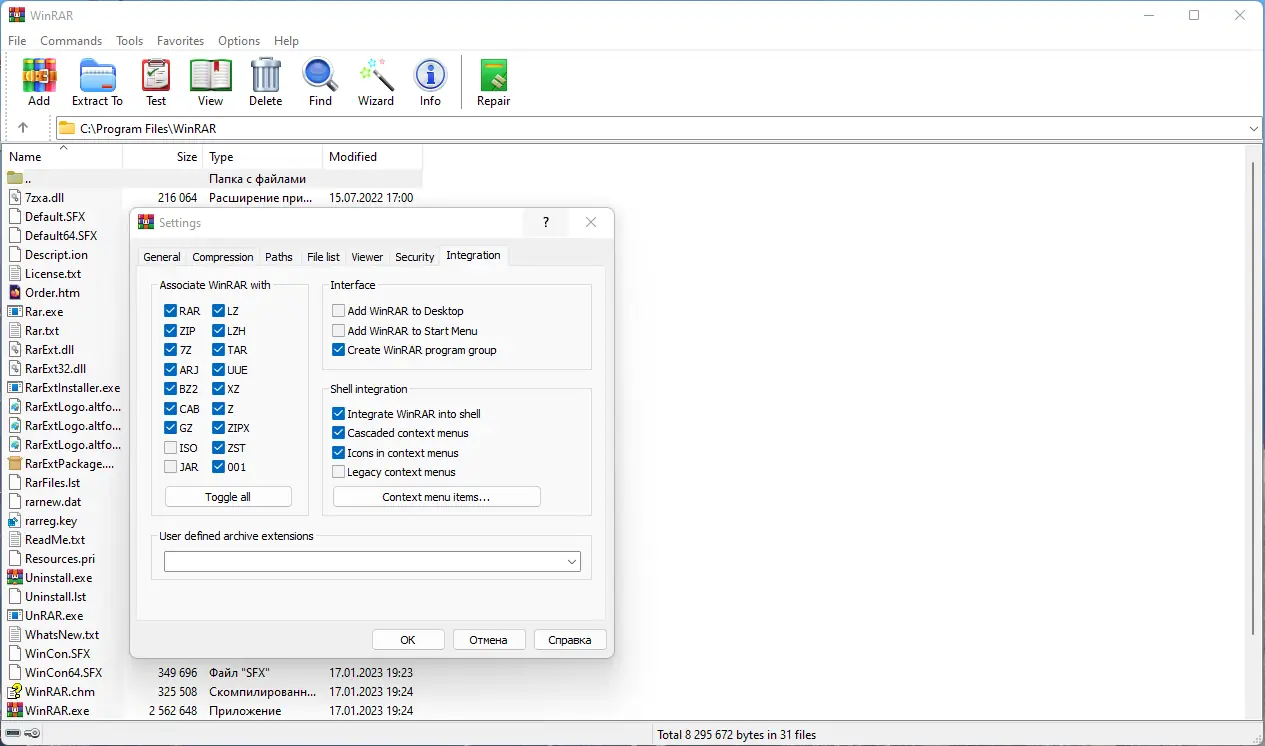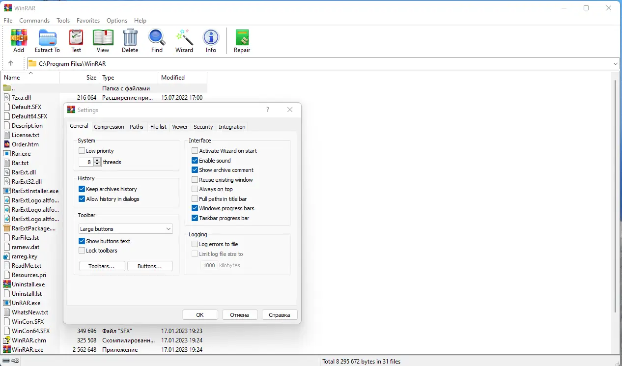 WinRAR — это одна из самых популярных системных утилит в категории архиваторов, предназначенная для сжатия, упаковки и извлечения файлов из архивов. Программа использует собственный алгоритм сжатия, оптимизированный для достижения максимальной степени упаковки без потери качества. Она поддерживает не только родной формат RAR, но и множество других, включая ZIP, 7-Zip, GZIP, BZIP2, JAR, ISO и CAB, что делает её универсальным инструментом для работы с архивами.