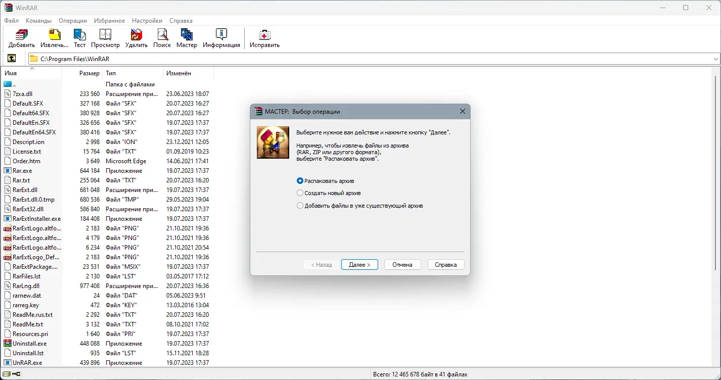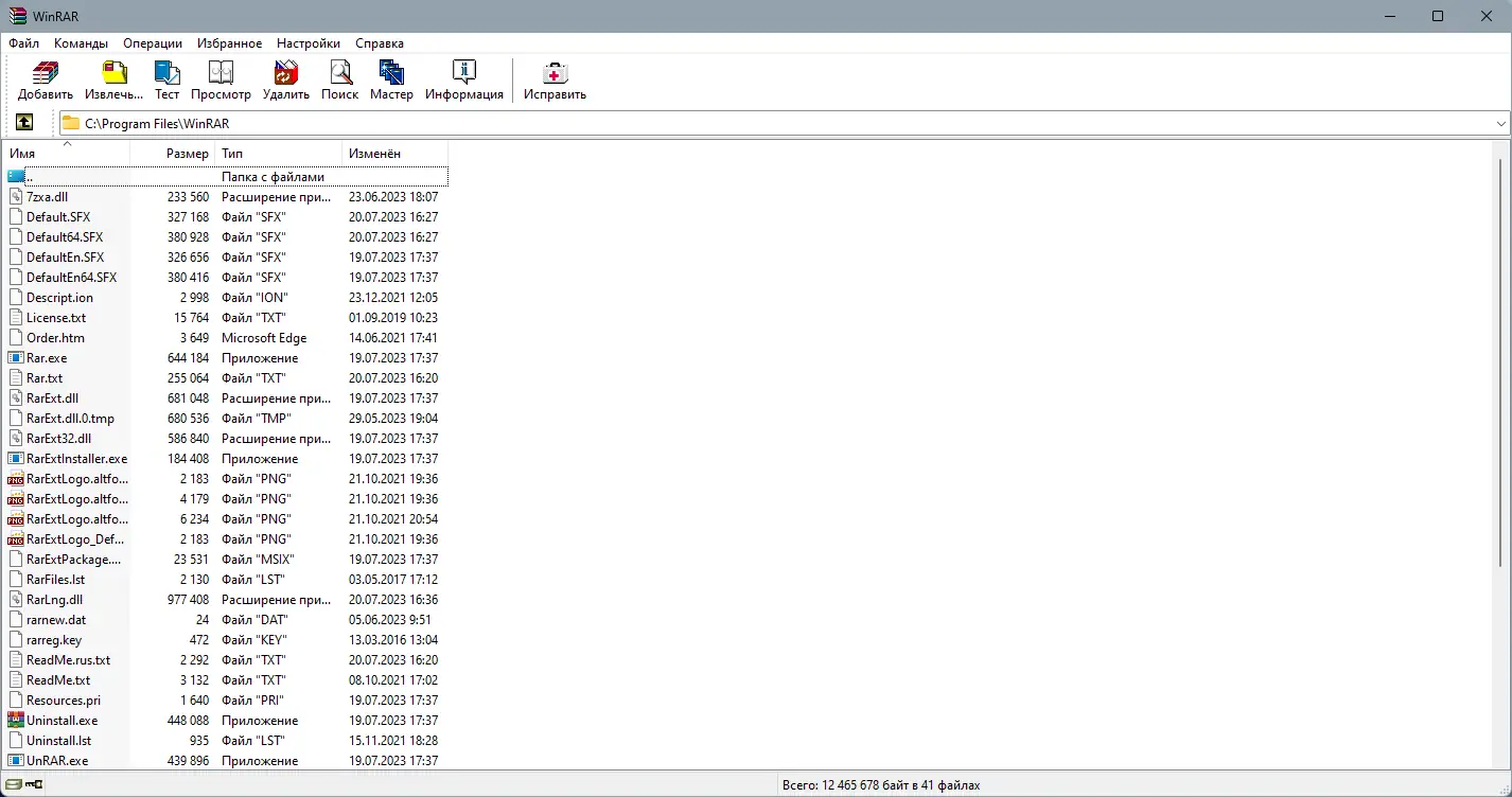 WinRAR — мощный и надежный инструмент для работы с архивами, поддерживающий широкий спектр форматов, включая RAR, ZIP, 7Z, TAR и другие. Программа обеспечивает высокую степень сжатия, защиту данных шифрованием и удобное управление многотомными архивами. Её функционал делает процесс упаковки и распаковки файлов максимально эффективным и безопасным.
