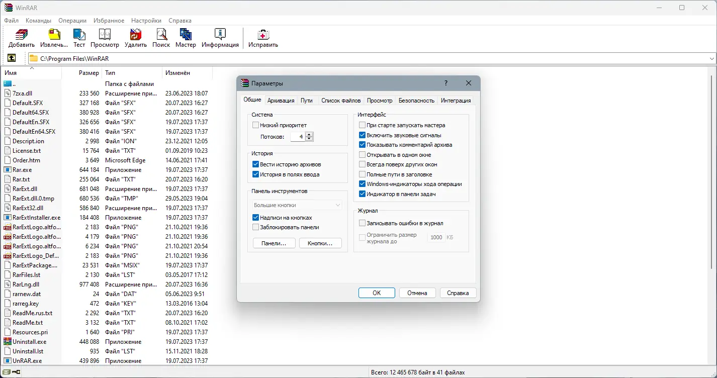 WinRAR — одна из наиболее популярных системных утилит в категории архиваторов, предназначенная для сжатия, упаковки и извлечения данных из архивов. Программа поддерживает собственный формат RAR, отличающийся высокой плотностью сжатия, а также совместима с ZIP, CAB, ARJ, LZH, TAR, GZ, BZIP2, JAR, UUE, 7-Zip и другими форматами. Это позволяет пользователю работать с архивами, созданными в различных средах, не прибегая к дополнительным программам.