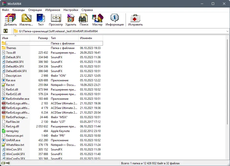 WinRAR — один из самых известных и надежных архиваторов, используемых на компьютерах с операционной системой windows. Программа изначально разработана для работы с форматом RAR, обеспечивая высокую эффективность сжатия и быстрый доступ к содержимому. Она также поддерживает множество других форматов, включая ZIP, CAB, ARJ, TAR, GZ, BZIP2, 7-Zip, ISO и JAR, что делает её универсальным решением для обработки архивов. Благодаря встроенному алгоритму сжатия, степень упаковки данных может быть на 10–50% выше по сравнению с традиционными методами, особенно при использовании режима непрерывного архивирования.