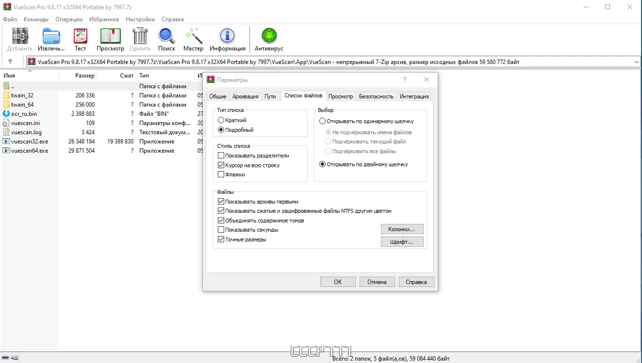 - Поддержка шифрования, многотомных архивов и восстановления повреждённых файлов.