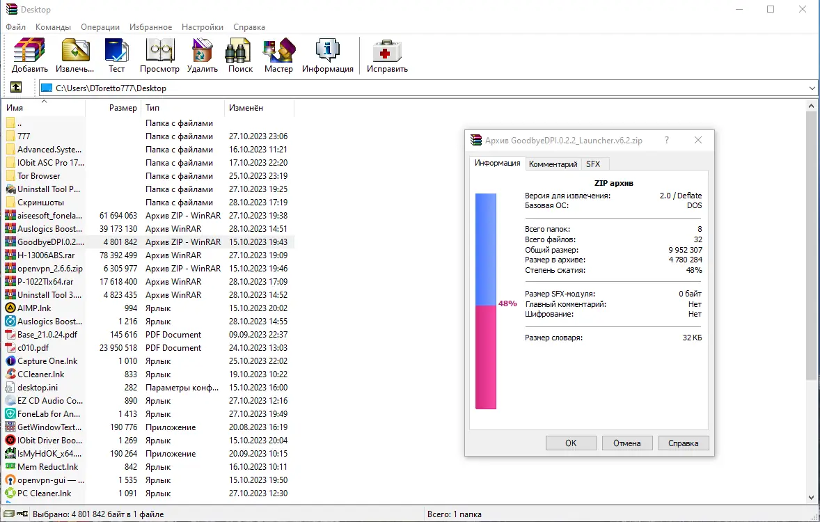 - Поддержка большого количества архивных форматов и создание RAR-архивов