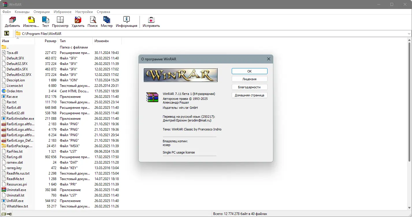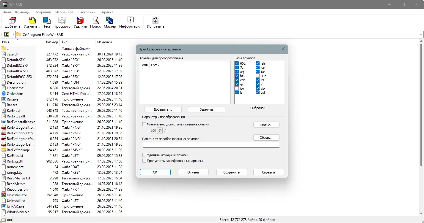 WinRAR — это мощный и надежный архиватор, поддерживающий широкий спектр форматов, включая RAR, ZIP, 7Z, TAR и другие. Программа обеспечивает высокую степень сжатия, защиту данных с помощью шифрования и удобное управление многотомными архивами. Подходит для пользователей, которым необходима стабильная работа с файлами на платформе Windows.