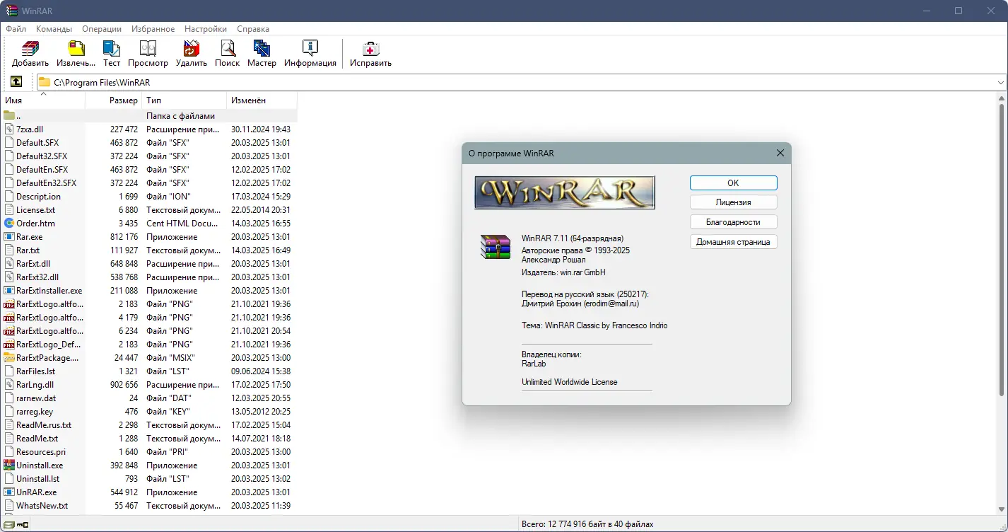 WinRAR — мощный и надёжный архиватор, обеспечивающий высокую степень сжатия данных и поддержку множества форматов. Программа позволяет создавать, распаковывать и управлять архивами, включая RAR, ZIP, 7Z, TAR и другие. Её функционал включает шифрование, создание многотомных архивов и восстановление повреждённых файлов.