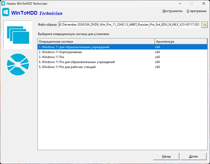 - Поддержка установки на SSD и HDD, подключённые к компьютеру напрямую