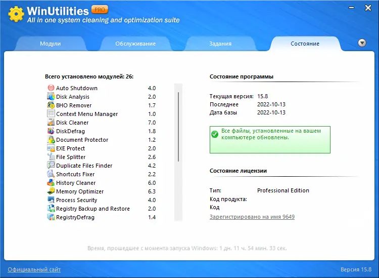 WinUtilities — это комплексная утилита для оптимизации и обслуживания операционной системы Windows, объединяющая более 20 инструментов для повышения производительности, очистки системы и управления ресурсами. Программа помогает ускорить работу компьютера, освободить место на диске, устранить ошибки реестра и защитить личные данные. Её интуитивный интерфейс и широкий функционал делают её подходящим решением для пользователей всех уровней.