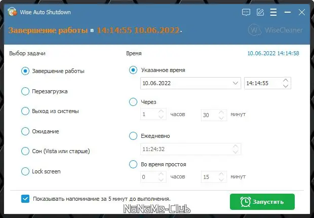 Программа Wise Auto Shutdown предназначена для автоматизации рутинных операций, связанных с завершением работы компьютера. Она позволяет запланировать отключение, перезагрузку, переход в спящий режим или гибернацию в заданное время или через указанный интервал. Утилита особенно полезна при необходимости оставить ПК включённым на определённый срок, например, для завершения загрузки файлов или выполнения фоновых задач.