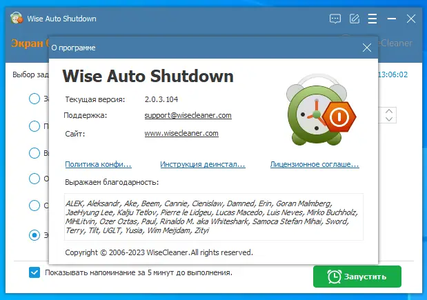 Описание Wise Auto Shutdown