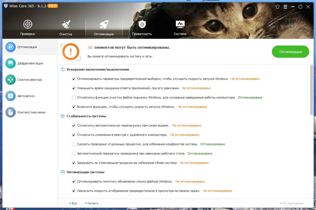 - Поддержка режима «в один клик», значительно упрощающего процесс оптимизации.