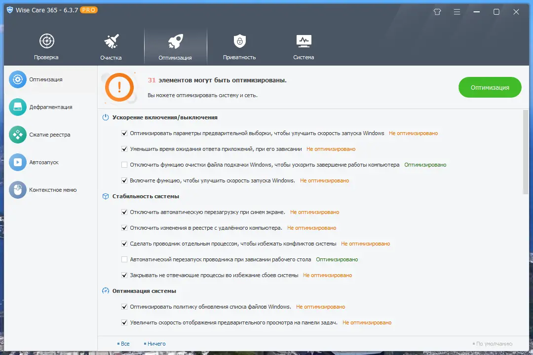 Оптимизация системы происходит быстро и безопасно, с возможностью отката изменений через резервные копии.