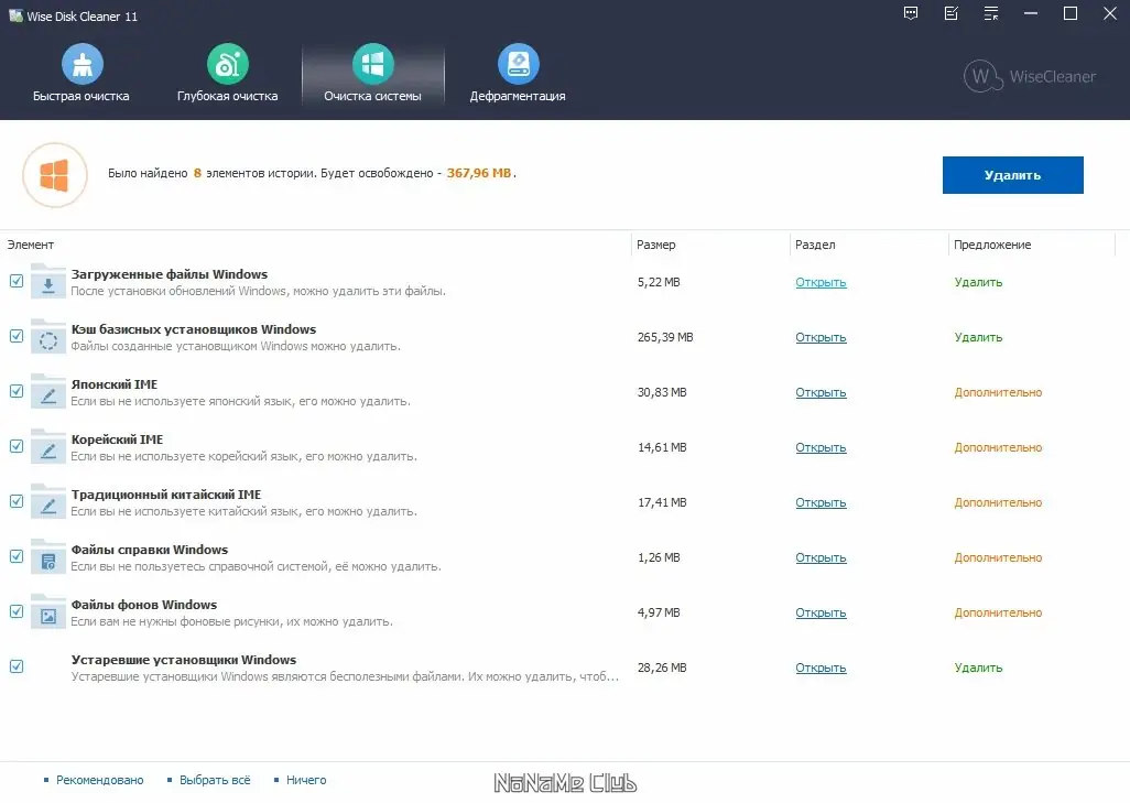 Wise Disk Cleaner разработана для комплексной очистки системы от файлового мусора, который со временем накапливается в результате работы операционной системы и установленных программ. Утилита быстро анализирует выбранные диски, выявляя ненужные файлы, включая остатки удалённых приложений, кэш-файлы и временные данные. Пользователь получает полный контроль над процессом: перед удалением можно просмотреть список найденных элементов, ознакомиться с их параметрами и выбрать, какие именно файлы следует убрать.