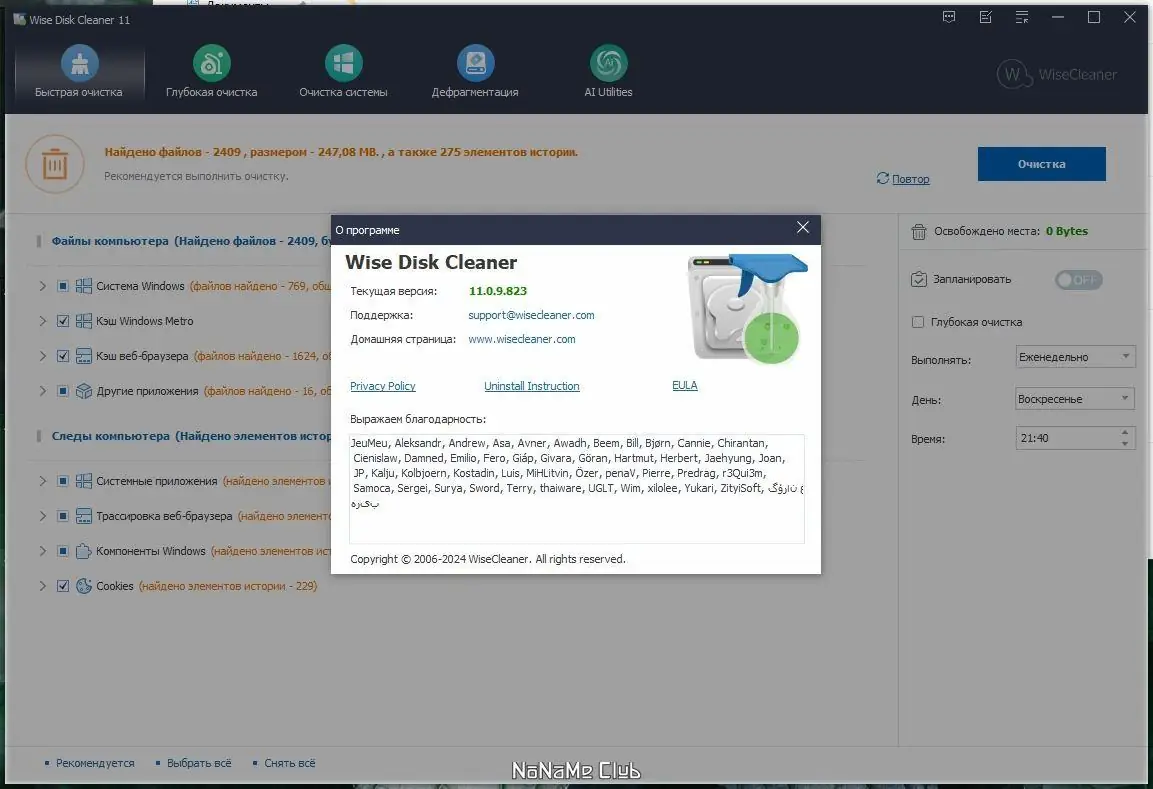 Wise Disk Cleaner — это легкая и эффективная утилита для очистки дисков от временных, кэшированных и ненужных файлов, способствующая ускорению работы системы и освобождению дискового пространства. Программа поддерживает анализ более чем 50 типов мусорных данных, включая остатки удалённых приложений, логи, дампы и временные файлы браузеров. Интерфейс интуитивно понятен, а процесс очистки можно настроить под индивидуальные потребности пользователя.