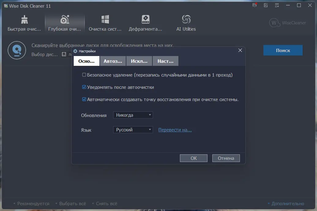 Использование Wise Disk Cleaner не требует специальных технических знаний. После запуска приложения необходимо выбрать типы файлов, которые следует проверить, и запустить сканирование. По завершении процесса откроется список всех обнаруженных элементов с детализацией по каждому, включая путь, размер и категорию. Пользователь может вручную отметить, какие файлы удалять, а затем подтвердить операцию. Дополнительно доступны настройки автоматической очистки по расписанию и выбор режима работы — стандартный или глубокий.