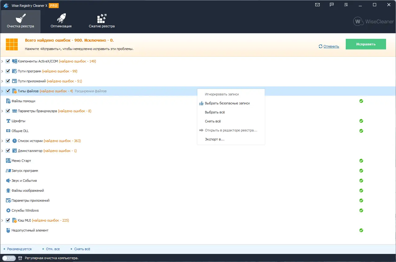 Wise Registry Cleaner — это утилита для глубокой и безопасной очистки реестра Windows от устаревших, повреждённых и ненужных записей. Программа помогает ускорить работу операционной системы, повысить её стабильность и предотвратить возможные сбои. Оптимизация реестра проводится с возможностью отката изменений и поддержкой резервного копирования.