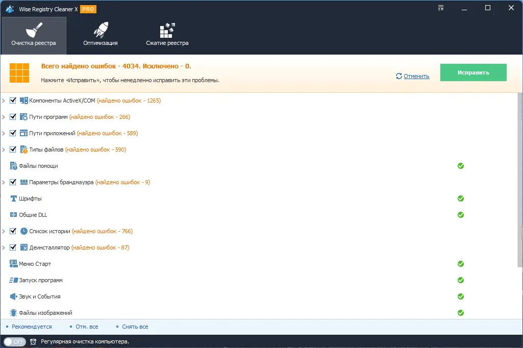 - Утилита способствует повышению общей производительности ПК за счёт устранения внутренних ошибок реестра.
