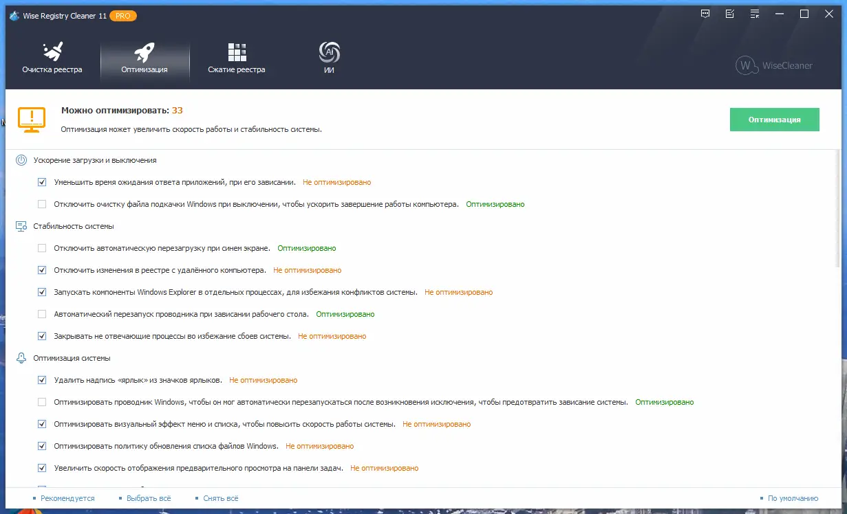 Wise Registry Cleaner — это инструмент для глубокой и безопасной очистки системного реестра Windows от устаревших, повреждённых и ненужных записей. Программа помогает повысить общую производительность компьютера, ускоряя запуск системы и приложений, а также предотвращая возможные сбои. Благодаря автоматическому созданию резервных копий и точек восстановления, использование утилиты не несёт рисков для стабильности операционной среды.
