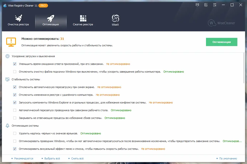 Описание Wise Registry Cleaner